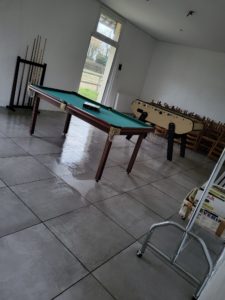 cette salle est également équipé d’un billard, d’un baby foot et d’un jeu de fléchettes.